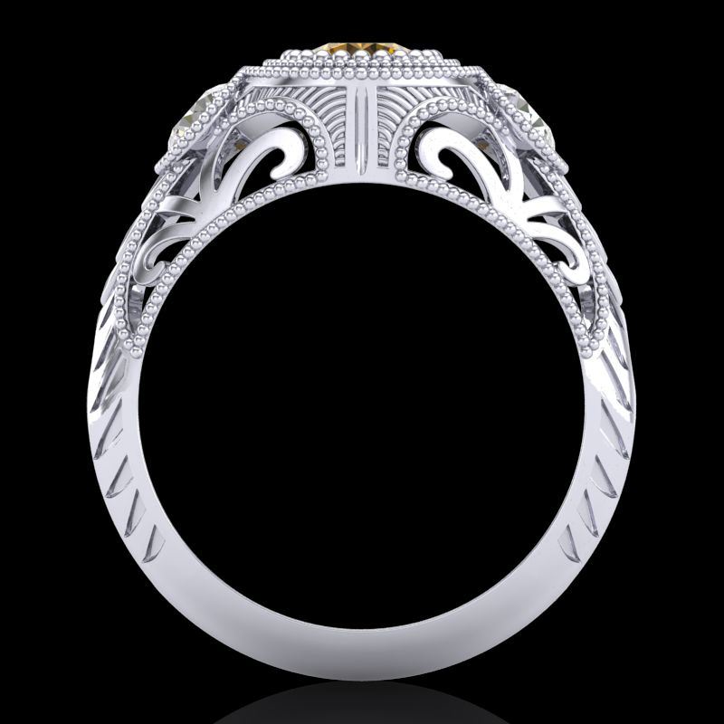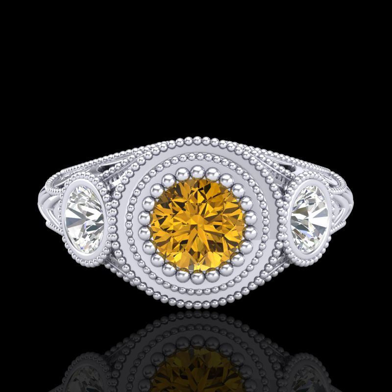 REF-154M5H -37497 ---- 1.06 CTW Intense Fancy Yellow Diamond Art Deco 3 Stone Ring 18K White Gold ---- Luxury Designer Brand 3 stone ring Appraised at $10,200 Certificate Number US37497  18k White gold,  3 stone ring Size is 7, 3 stone ring measuring approx. Uniform, weighing in total approx. 9 grams. Made in the USA and is stamped 18k, Main stone 0.55 carat total weight containing 1 pieces of Intense Fancy Yellow color with SI quality Round shape cut Diamond , Stone #2 0.51 carat total weight containing 2 pieces of H-I color with  VS/SI quality Round shape cut Diamond