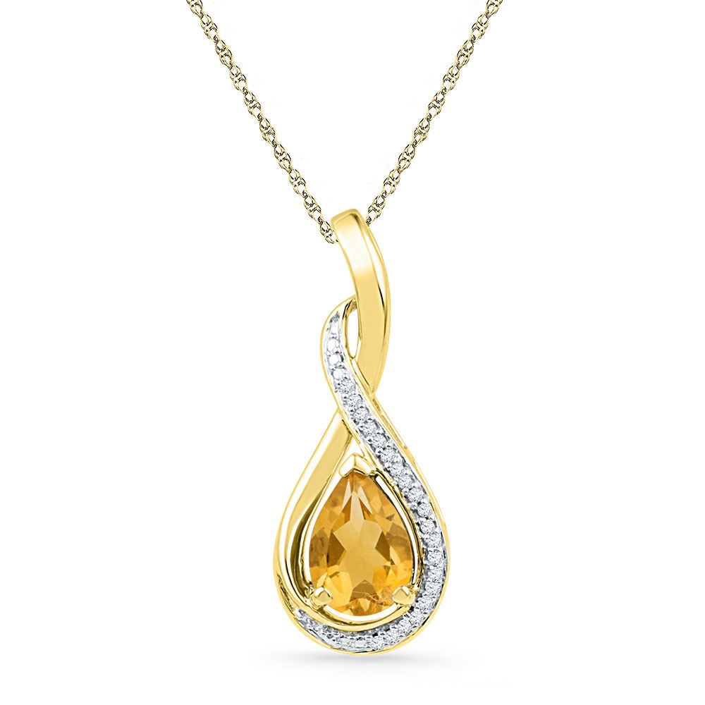 REF-18M2H- SKU: GD101288 ---- 1.06 CTW Pear Created Citrine Solitaire Diamond Pendant 10KT Yellow Gold