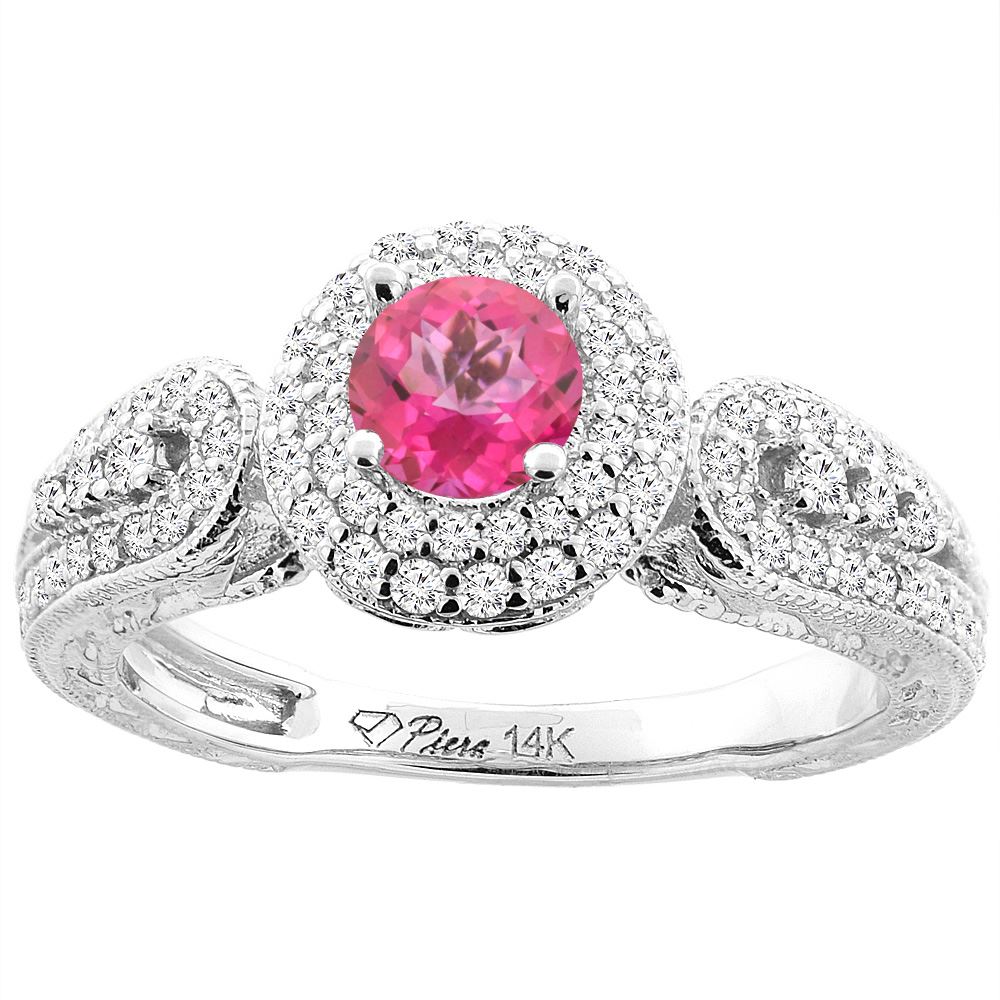REF-88H8M - SKU: SC-CY406385 ---- 1.06 CTW Pink Topaz & Diamond Ring 14K White Gold