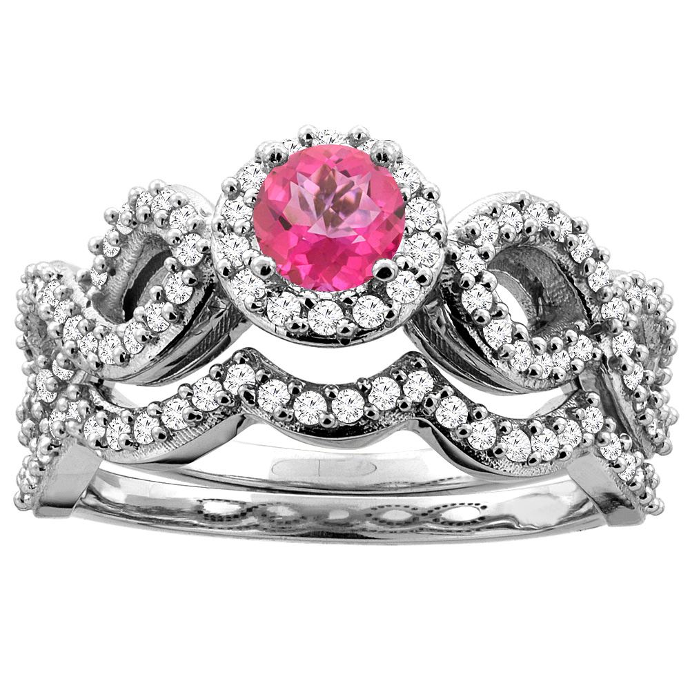REF-93V3R - SKU: SC-CY406350 ---- 1.06 CTW Pink Topaz & Diamond Ring 14K White Gold