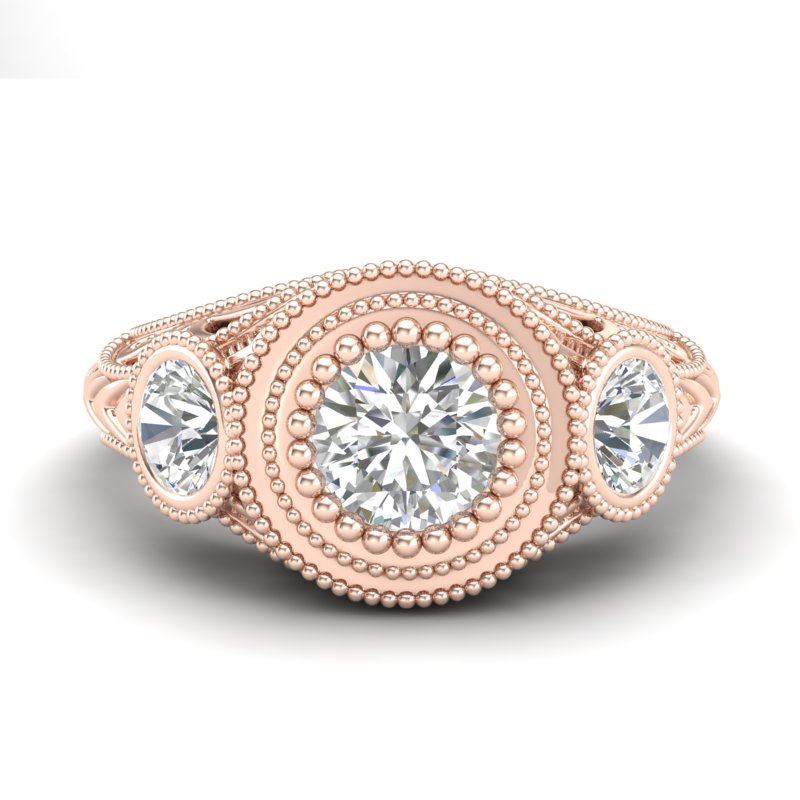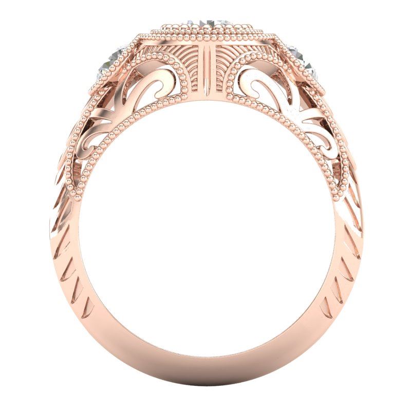1.06 CTW VS/SI Diamond Solitaire Art Deco 3 Stone Ring 18K Rose Gold ---- Luxury Designer Brand 3 stone ring Appraised Retail Price at $10,900 ---- SKU Number US36894 18k Rose gold 3 stone ring Size is 7, 3 stone ring measuring approx. Uniform, weighing in total approx. 9 grams. Made in the USA and is stamped 18k, Main stone 0.55 carat total weight containing 1 pieces of H-J color with VS/SI quality Round shape cut Diamond , Stone #2 0.51 carat total weight containing 2 pieces of H-I color with VS/SI quality Round shape cut