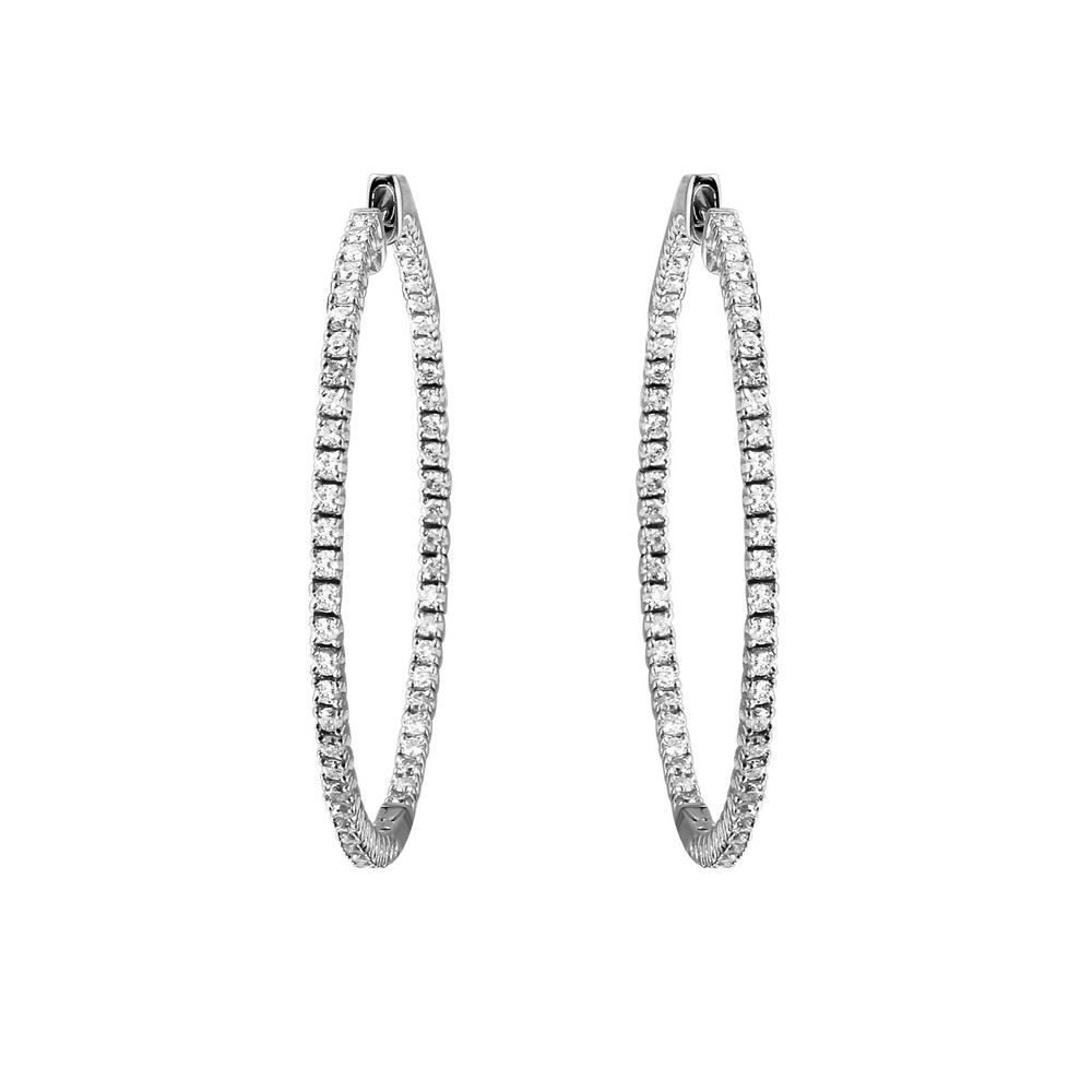 REF-118W2K - SKU: JF400640 ---- 1.06 CTW White Round Diamond Hoop Earring 14K White Gold