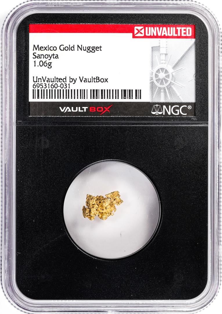 One 1.06 Gram Sanoyta Mexico Gold Nugget NGC Vaultbox Unvaulted. NGC Certified.