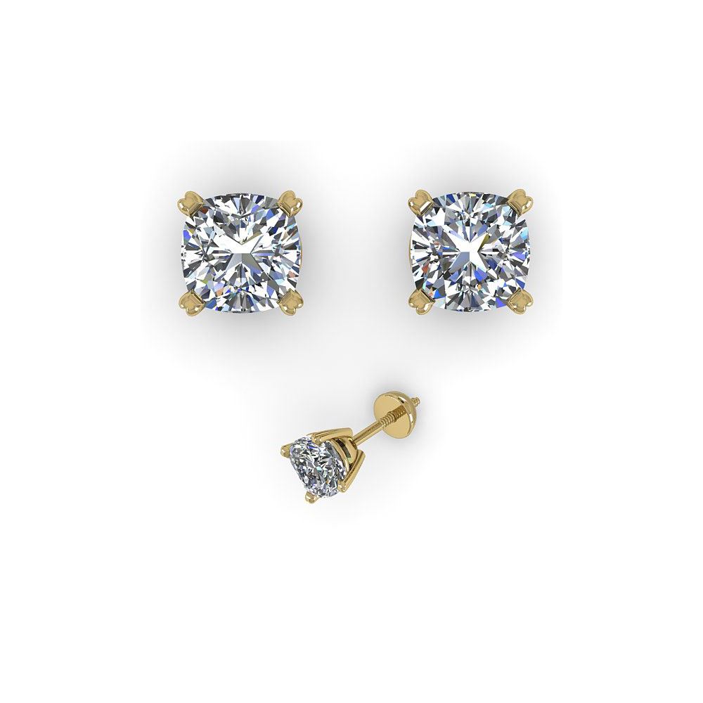 1.06 ctw Cushion VS/SI Diamond Stud Designer Earrings 18K Yellow Gold