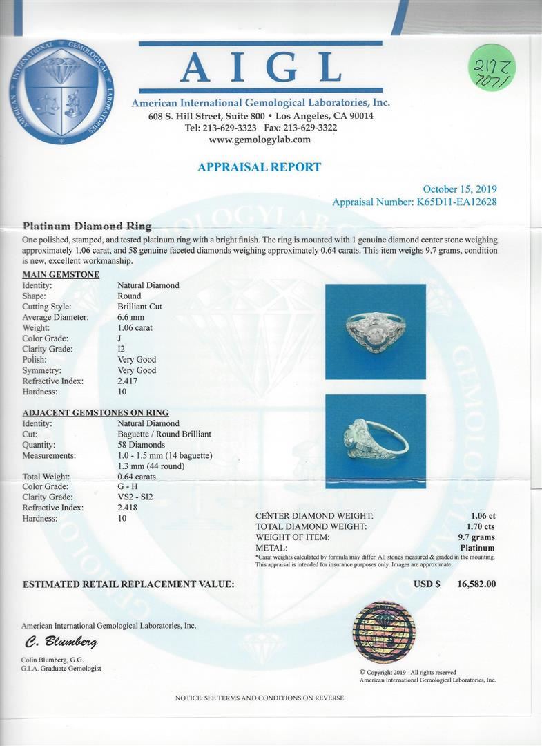 One 1.06ct Diamond Ring - Platinum. AIG certified. See Appraisal for more details. AIG Appraised.