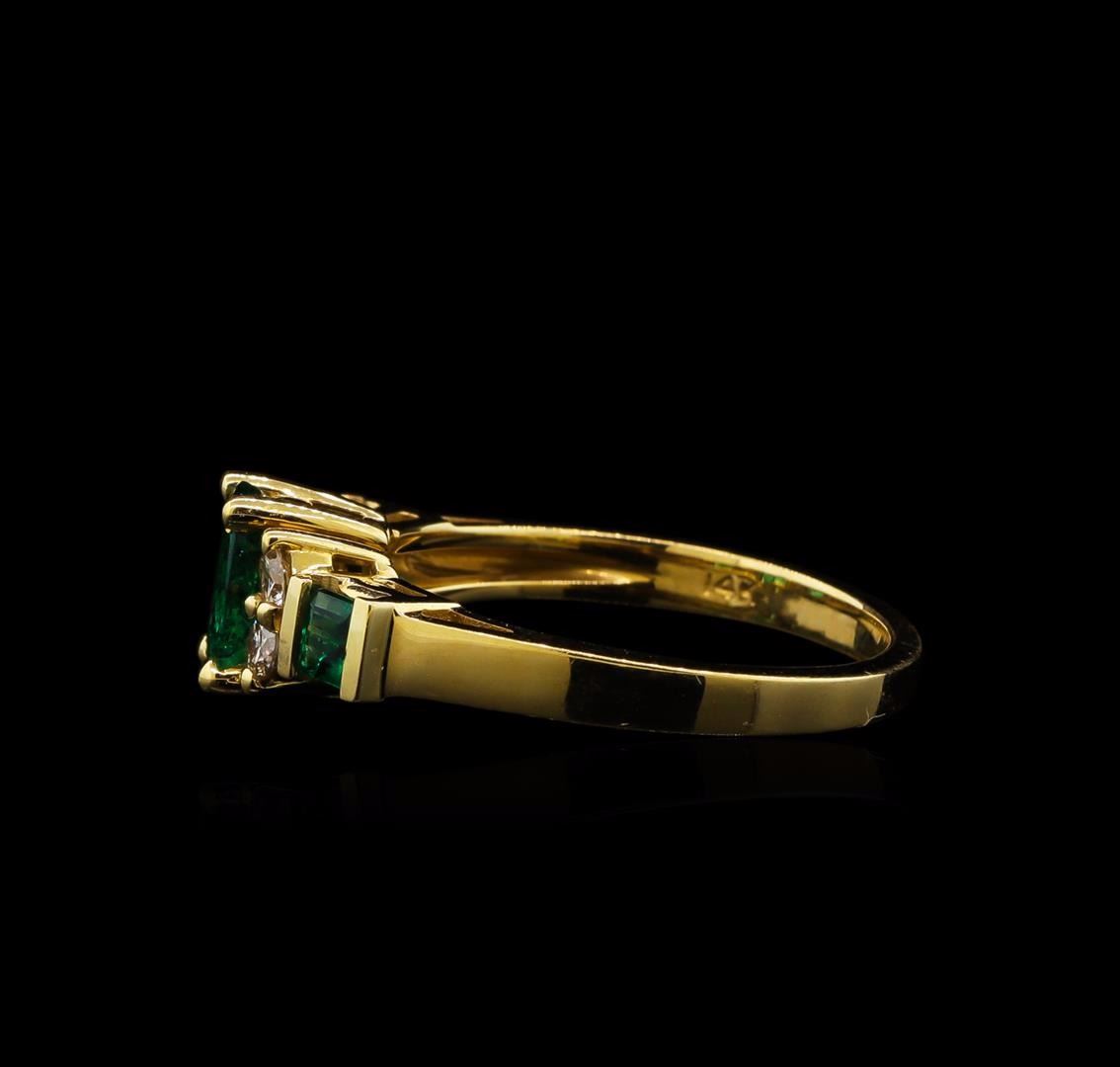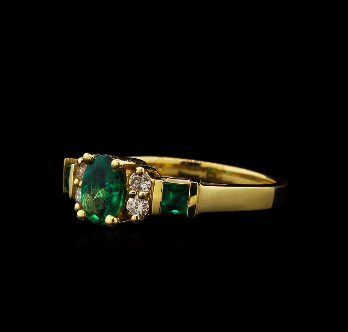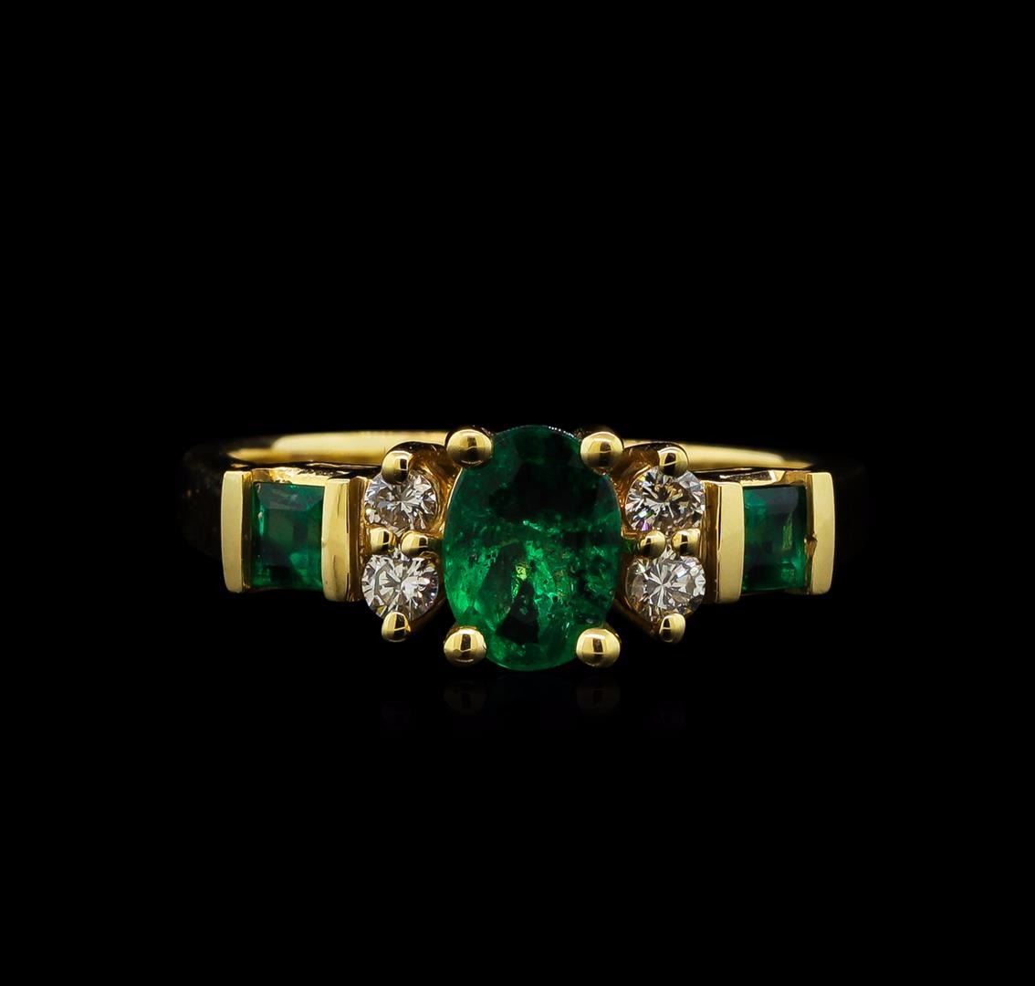 One ring featuring: 14KT yellow gold containing Emerald with a total weight of 1.06ct and diamonds with a total weight of 0.20ctw.