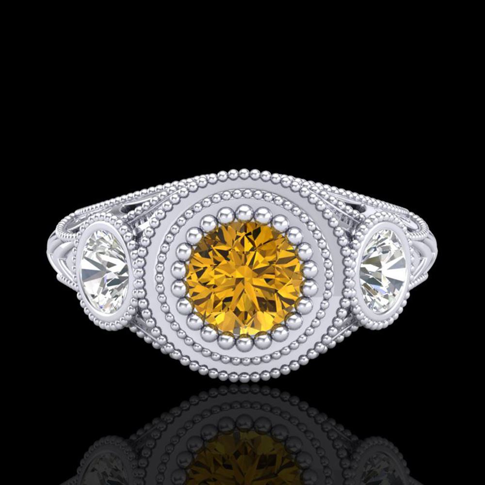 REF-154X5A - SKU: 37497 ---- 1.06 ctw Intense Fancy Yellow Diamond Art Deco Ring 18k White Gold
