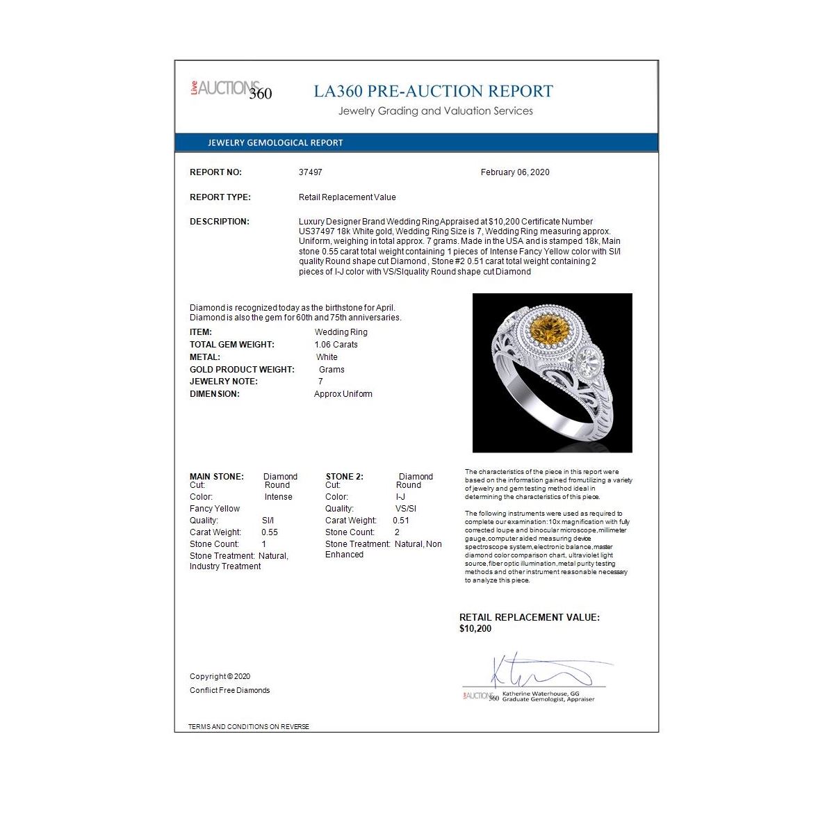 REF-154X5A - SKU: 37497 ---- 1.06 ctw Intense Fancy Yellow Diamond Art Deco Ring 18k White Gold