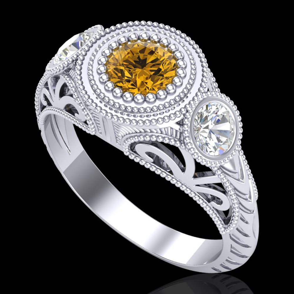 REF-154X5A - SKU: 37497 ---- 1.06 ctw Intense Fancy Yellow Diamond Art Deco Ring 18k White Gold