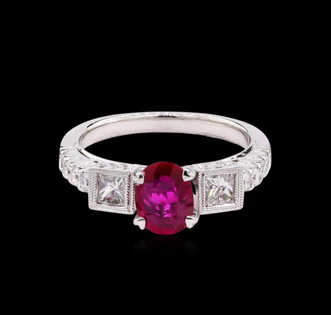 One ring featuring: 18KT white gold weighing 4.90 grams containing one ruby with a total weight of 1.06ct and side diamonds with a total weight of 0.68ct.
