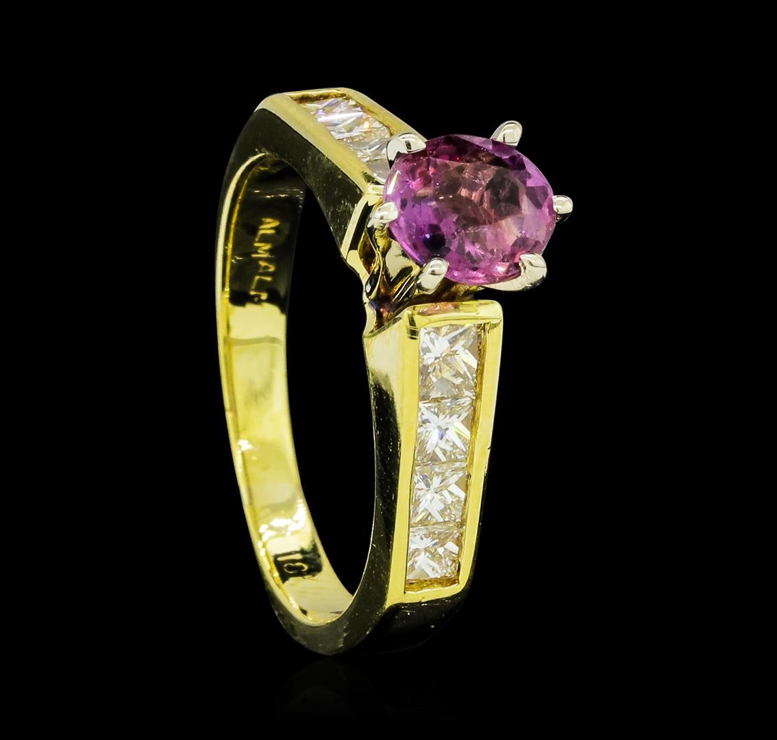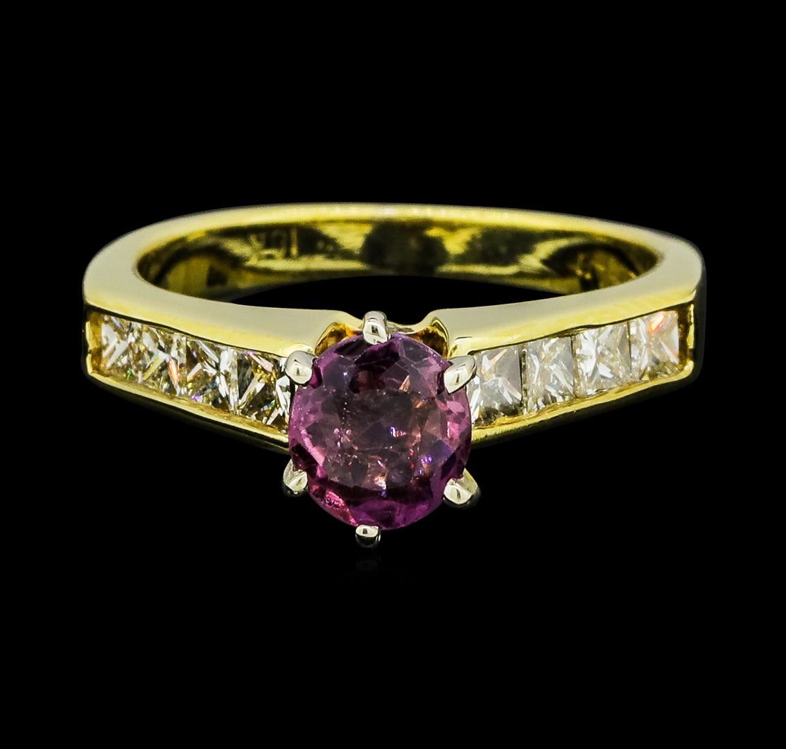 One lady's ring featuring: 18KT yellow gold weighing 4.5 grams containing one ruby weighing 1.06ct and diamonds weighing 0.50ctw.
