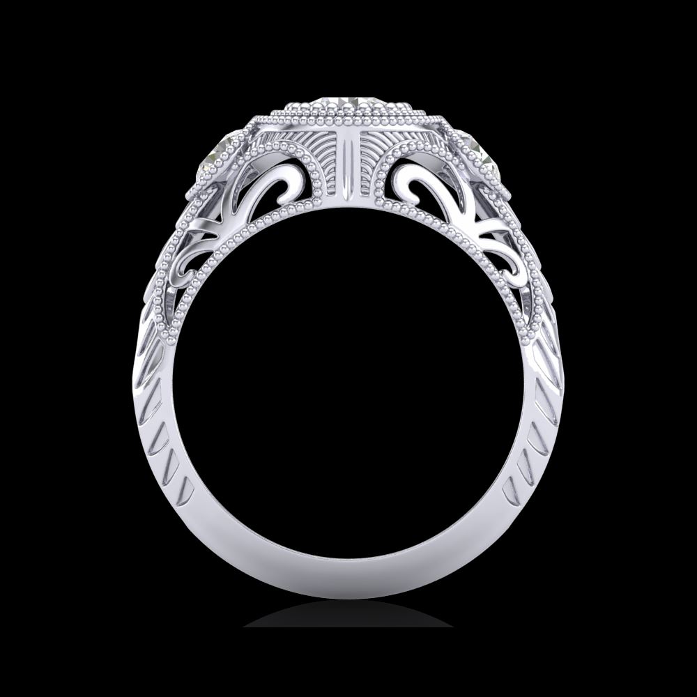 1.06 ctw VS/SI Diamond Solitaire Art Deco 3 Stone Ring 18K White Gold