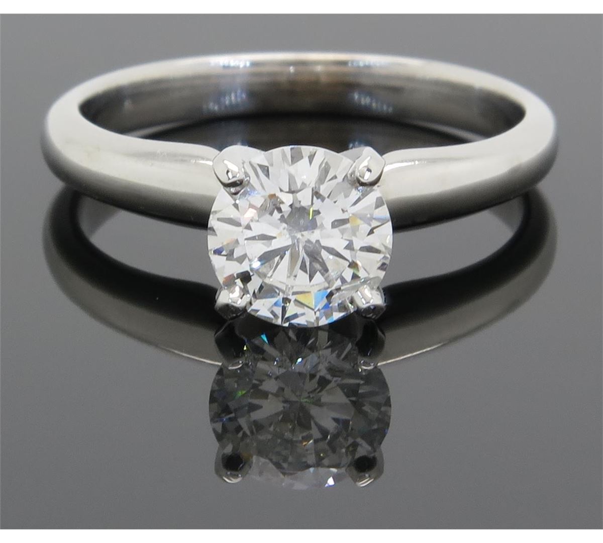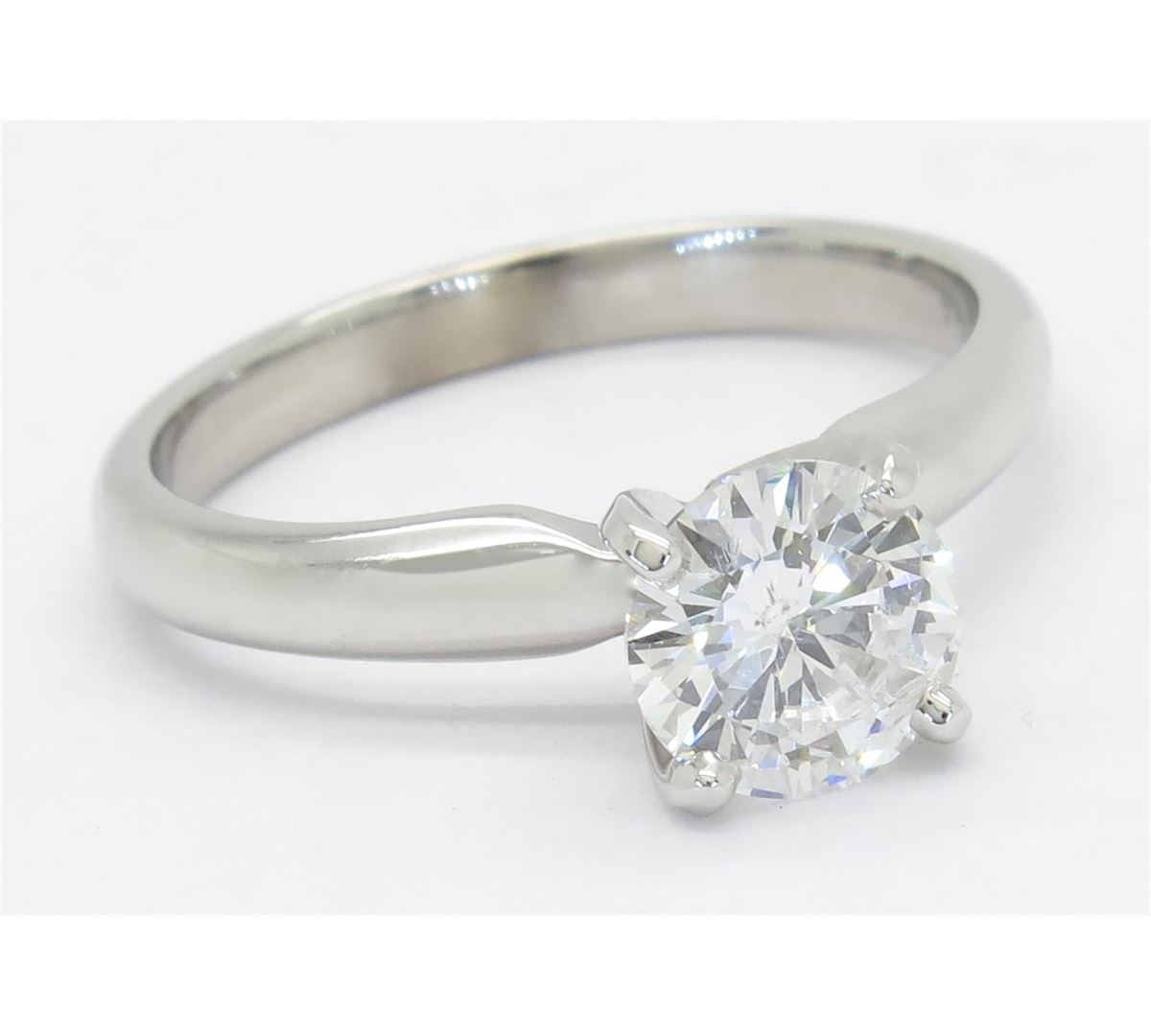 One tested 14K white gold diamond ring. Containing: One IGI Certified prong set Round Brilliant Cut Diamond, Size: 1.06CT, Clarity: I1, Color: H. All diamonds are graded in the mounting unless otherwise stated. Weight of ring: 3.6 grams, Size: 7.0.