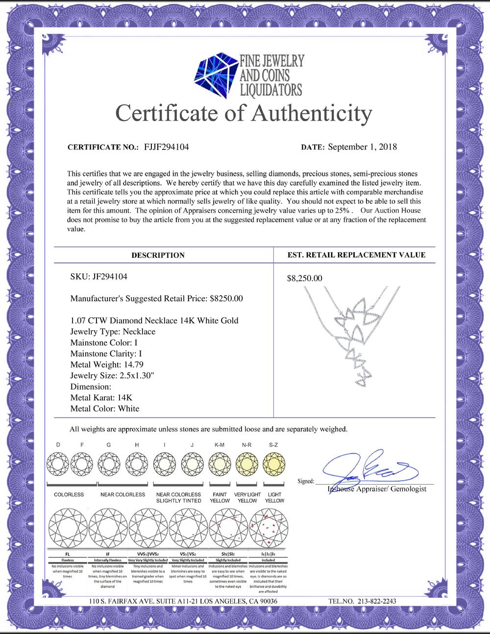 REF-107W8H - JF294104 ---- 1.07 CTW White Round Diamond Necklace 14K White Gold