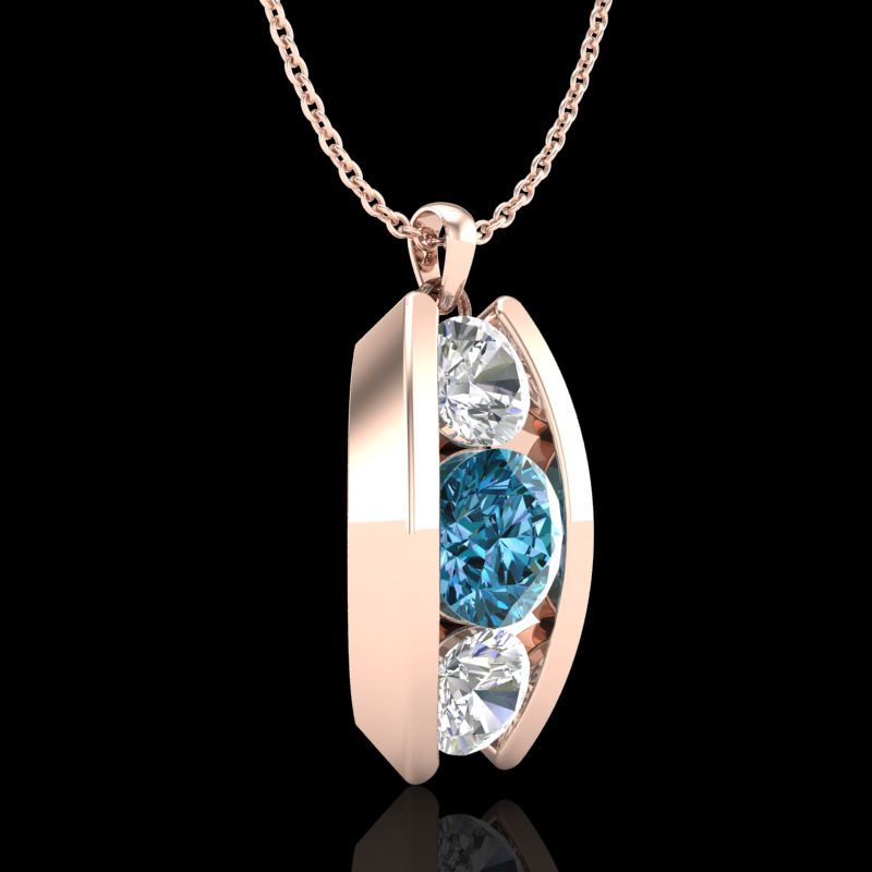 REF-123X6T -37776 ---- 1.07 CTW Fancy Intense Blue Diamond Solitaire Art Deco Necklace 18K Rose Gold ---- Luxury Designer Brand NECKLACE Appraised at $8,150 Certificate Number US37776 18k Rose gold, NECKLACE Size is 16 Inches, NECKLACE measuring approx. Uniform, weighing in total approx. 3.5 grams. Made in the USA and is stamped 18k, Main stone 0.57 carat total weight containing 1 pieces of Intense Fancy Blue color with SI quality Round shape cut Diamond , Stone #2 0.5 carat total weight containing 2 pieces of H-I color with VS/SI quality Round shape cut Diamond
