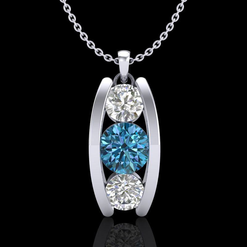 REF-123N6Y -37775 ---- 1.07 CTW Fancy Intense Blue Diamond Solitaire Art Deco Necklace 18K White Gold ---- Luxury Designer Brand NECKLACE Appraised at $8,150 Certificate Number US37775 18k White gold, NECKLACE Size is 16 Inches, NECKLACE measuring approx. Uniform, weighing in total approx. 3.5 grams. Made in the USA and is stamped 18k, Main stone 0.57 carat total weight containing 1 pieces of Intense Fancy Blue color with SI quality Round shape cut Diamond , Stone #2 0.5 carat total weight containing 2 pieces of H-I color with VS/SI quality Round shape cut Diamond