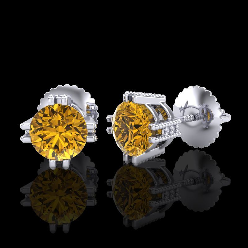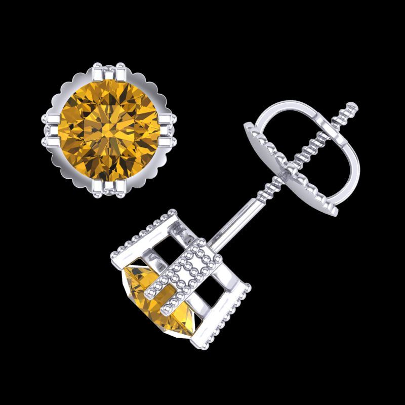 REF-172W8F -37539 ---- 1.07 CTW Intense Fancy Yellow Diamond Art Deco Stud Earrings 18K White Gold ---- Luxury Designer Brand Earring Appraised at $11,400 Certificate Number US37539 18k White gold, Earring Size is Larger, Earring measuring approx. Uniform, weighing in total approx. 5 grams. Made in the USA and is stamped 18k, Main stone 1.07 carat total weight containing 2 pieces of Intense Fancy Yellow color with SI quality Round shape cut Diamond , Stone #2 carat total weight containing pieces of color with quality shape cut