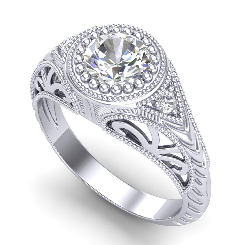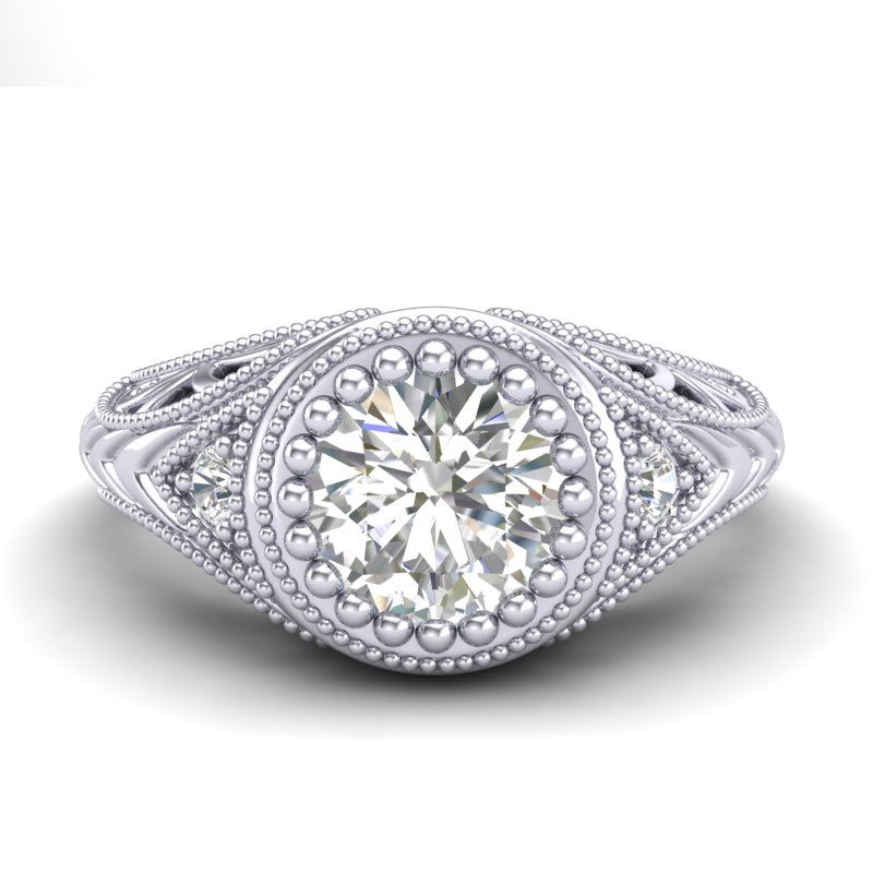 36884 - REF-321M2F ---- 1.07 CTW VS/SI Diamond Art Deco Ring 18K White Gold ---- Luxury Designer Brand Ring Appraised at $23,550 Certificate Number US36884 18k White gold, Ring Size is 7, Ring measuring approx. Uniform, weighing in total approx. 5.7 grams. Made in the USA and is stamped 18k, Main stone 1 carat total weight containing 1 pieces of H-J color with VS/SI quality Round shape cut Diamond , Stone #2 0.07 carat total weight containing 2 pieces of H-I color with VS/SI quality Round shape cut Diamond