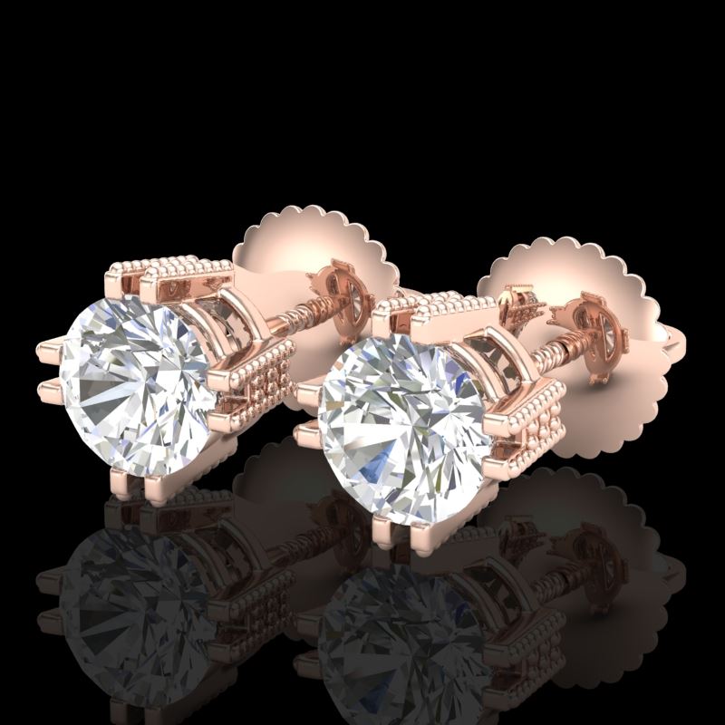 1.07 CTW VS/SI Diamond Solitaire Art Deco Stud Earrings 18K Rose Gold ---- Luxury Designer Brand Earring Appraised Retail Price at $11,000 ---- SKU Number US36912 18k Rose gold Earring Size is Larger, Earring measuring approx. Uniform, weighing in total approx. 7.5 grams. Made in the USA and is stamped 18k, Main stone 1.07 carat total weight containing 2 pieces of H-J color with VS/SI quality Round shape cut Diamond , Stone #2 carat total weight containing pieces of color with quality shape cut
