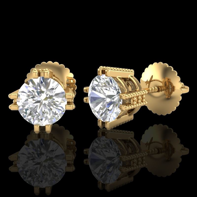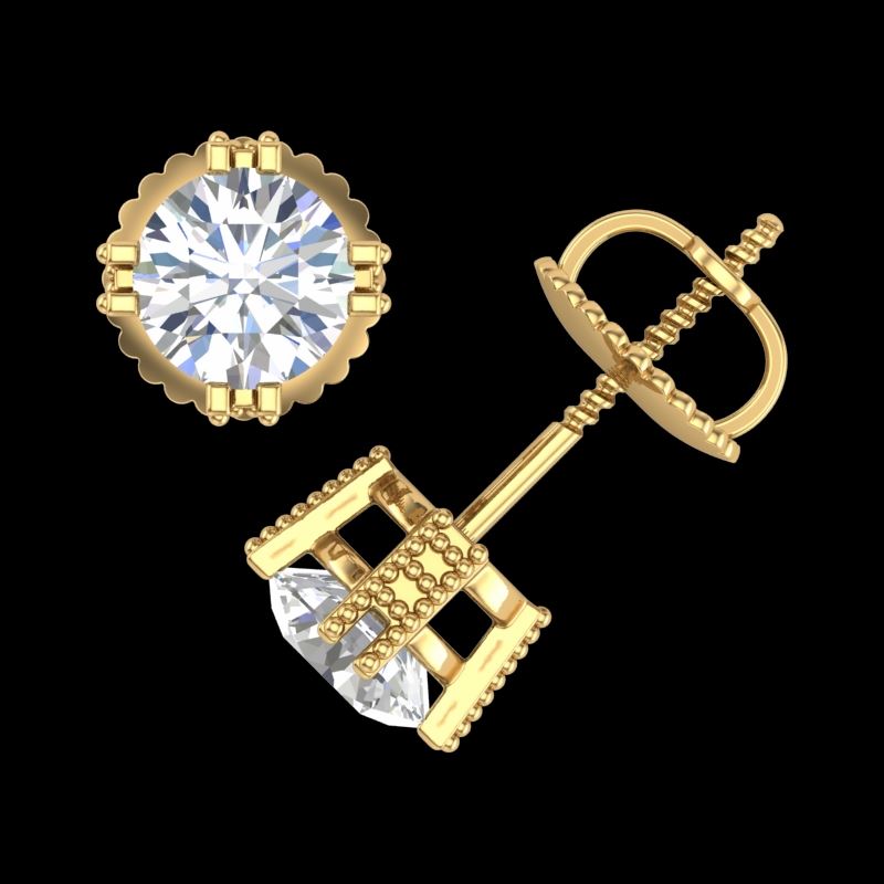 REF-200A2X -36913 ---- 1.07 CTW VS/SI Diamond Solitaire Art Deco Stud Earrings 18K Yellow Gold ---- Luxury Designer Brand Earring Appraised at $11,000 Certificate Number US36913 18k Yellow gold, Earring Size is Larger, Earring measuring approx. Uniform, weighing in total approx. 1.5 grams. Made in the USA and is stamped 18k, Main stone 1.07 carat total weight containing 2 pieces of H-J color with VS/SI quality Round shape cut Diamond , Stone #2 carat total weight containing pieces of color with quality shape cut