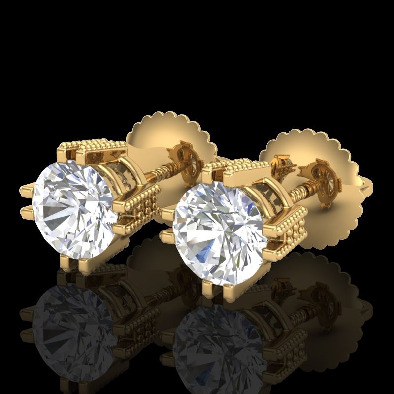 REF-200A2X -36913 ---- 1.07 CTW VS/SI Diamond Solitaire Art Deco Stud Earrings 18K Yellow Gold ---- Luxury Designer Brand Earring Appraised at $11,000 Certificate Number US36913 18k Yellow gold, Earring Size is Larger, Earring measuring approx. Uniform, weighing in total approx. 1.5 grams. Made in the USA and is stamped 18k, Main stone 1.07 carat total weight containing 2 pieces of H-J color with VS/SI quality Round shape cut Diamond , Stone #2 carat total weight containing pieces of color with quality shape cut