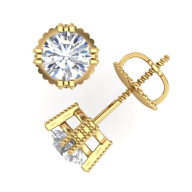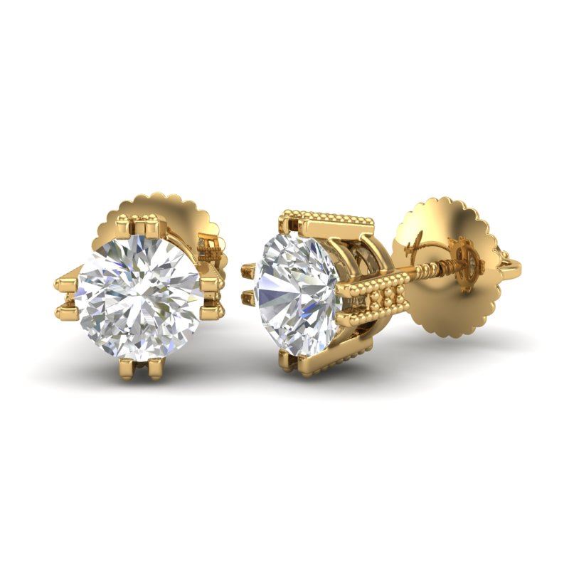 REF-200X2T -36913 ---- 1.07 CTW VS/SI Diamond Solitaire Art Deco Stud Earrings 18K Yellow Gold ---- Luxury Designer Brand Earring Appraised at $12,100 Certificate Number US36913 18k Yellow gold, Earring Size is Larger, Earring measuring approx. Uniform, weighing in total approx. 1.5 grams. Made in the USA and is stamped 18k, Main stone 1.07 carat total weight containing 2 pieces of H-J color with VS/SI quality Round shape cut Diamond , Stone #2 carat total weight containing pieces of color with quality shape cut