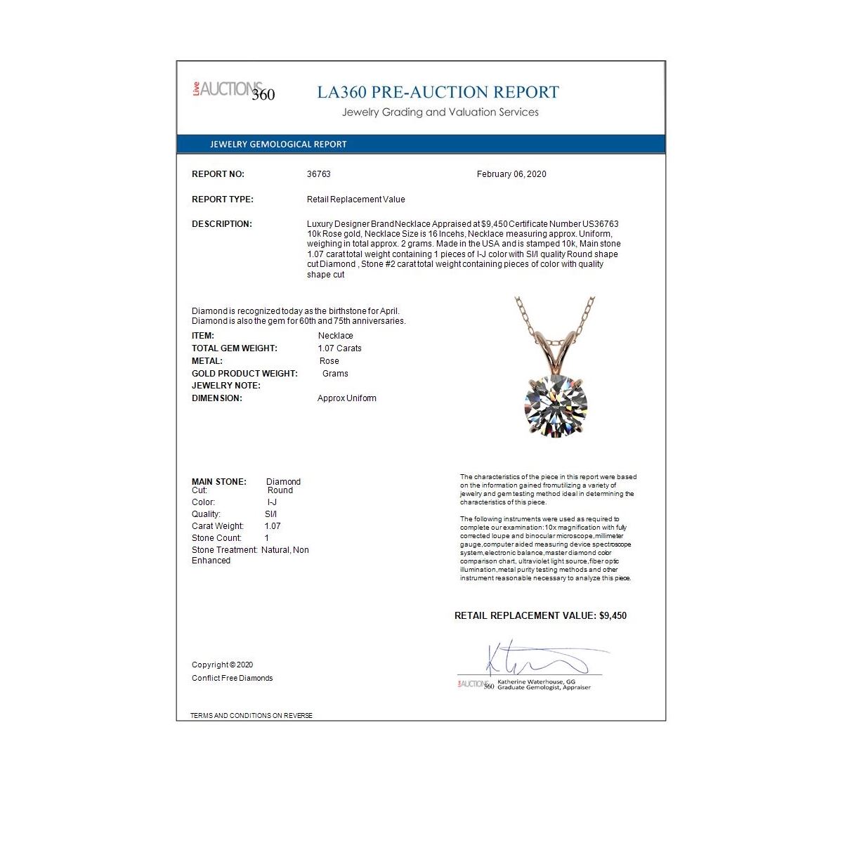 REF-141R3K - SKU: 36763 ---- 1.07 ctw Certified Quality Diamond Necklace 10k Rose Gold