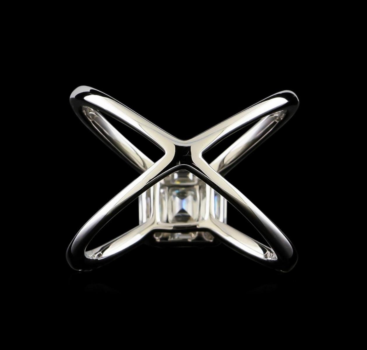 One electronically tested 18KT white gold ladies cast diamond ring with a bright polish finish. The ring features an organized diamond cluster set within mirroring diamond set split shoulders, completed by a two and one-half millimeter wide band. Identified with markings of "G750". Condition is new, good workmanship. Containing: One prong set baguette cut diamond, measuring 4.30 x 3.50 x 2.20mm (depth est.) approximate weight of 0.32ct. Graded in the setting. Clarity: SI-1. Color: G Two prong set baguette cut diamonds, measuring from 3.90 x 2.30 x 1.61mm (depth est.) to 4.00 x 2.50 x 1.75mm (depth est.) approximate total weight of 2 Stones = 0.30ct. Graded in the setting. Clarity: VS-2. Color: G Two prong set baguette cut diamonds, measuring from 2.80 x 1.80 x 1.26mm (depth est.) to 2.90 x 1.80 x 1.26mm (depth est.) approximate total weight of 2 Stones = 0.12ct. Graded in the setting. Clarity: VS-2. Color: G Four prong set round brilliant cut diamonds, measuring 2.20 - 2.10 x 1.29mm (depth est.) approximate total weight of 4 Stones = 0.15ct. Graded in the setting. Clarity: SI-1 to SI-2. Color: H - I Thirty-Two prong set round brilliant cut diamonds, measuring 1.10 - 1.00 x 0.63mm (depth est.) approximate total weight of 32 Stones = 0.18ct. Graded in the setting. Clarity: SI-1 to SI-2. Color: G - I. Total Weight of Diamonds 1.07ct. Total Weight of Ring 5.25gm. AIG Appraised.