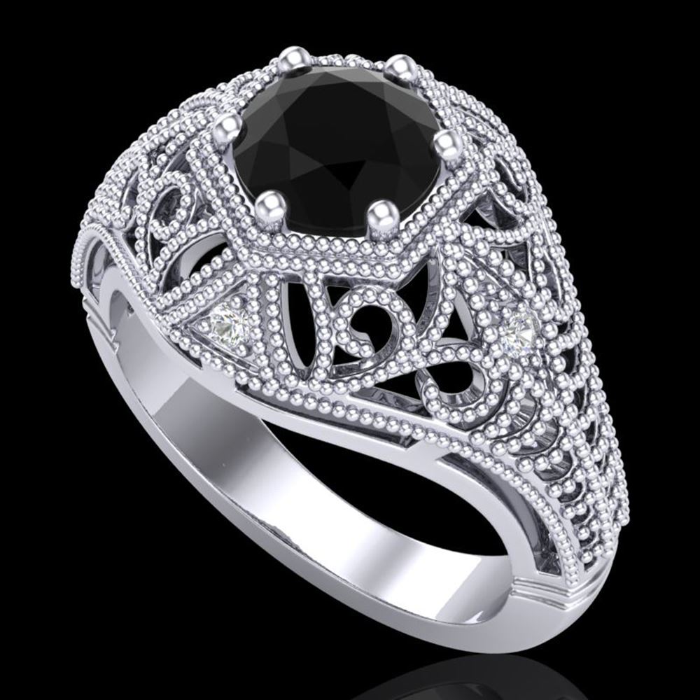 REF-85M5G - SKU: 37548 ---- 1.07 ctw Fancy Black Diamond Engagment Art Deco Ring 18k White Gold