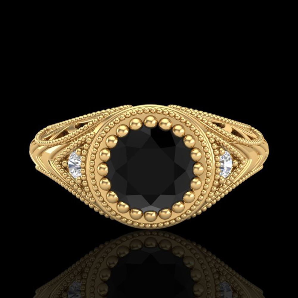 REF-56M2G - SKU: 37473 ---- 1.07 ctw Fancy Black Diamond Engagment Art Deco Ring 18k Yellow Gold