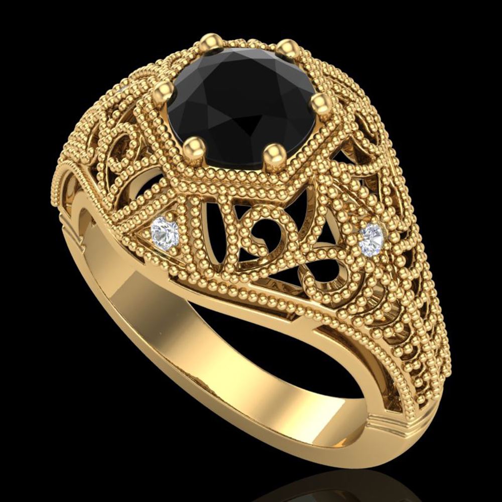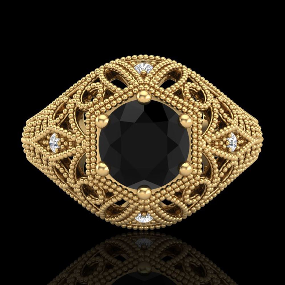 REF-85R5K - SKU: 37550 ---- 1.07 ctw Fancy Black Diamond Engagment Art Deco Ring 18k Yellow Gold