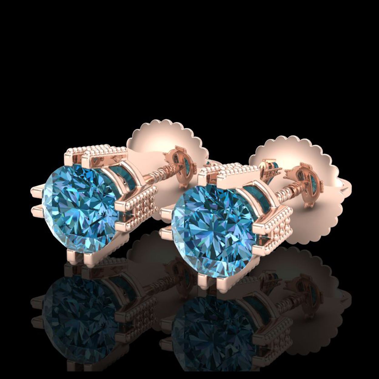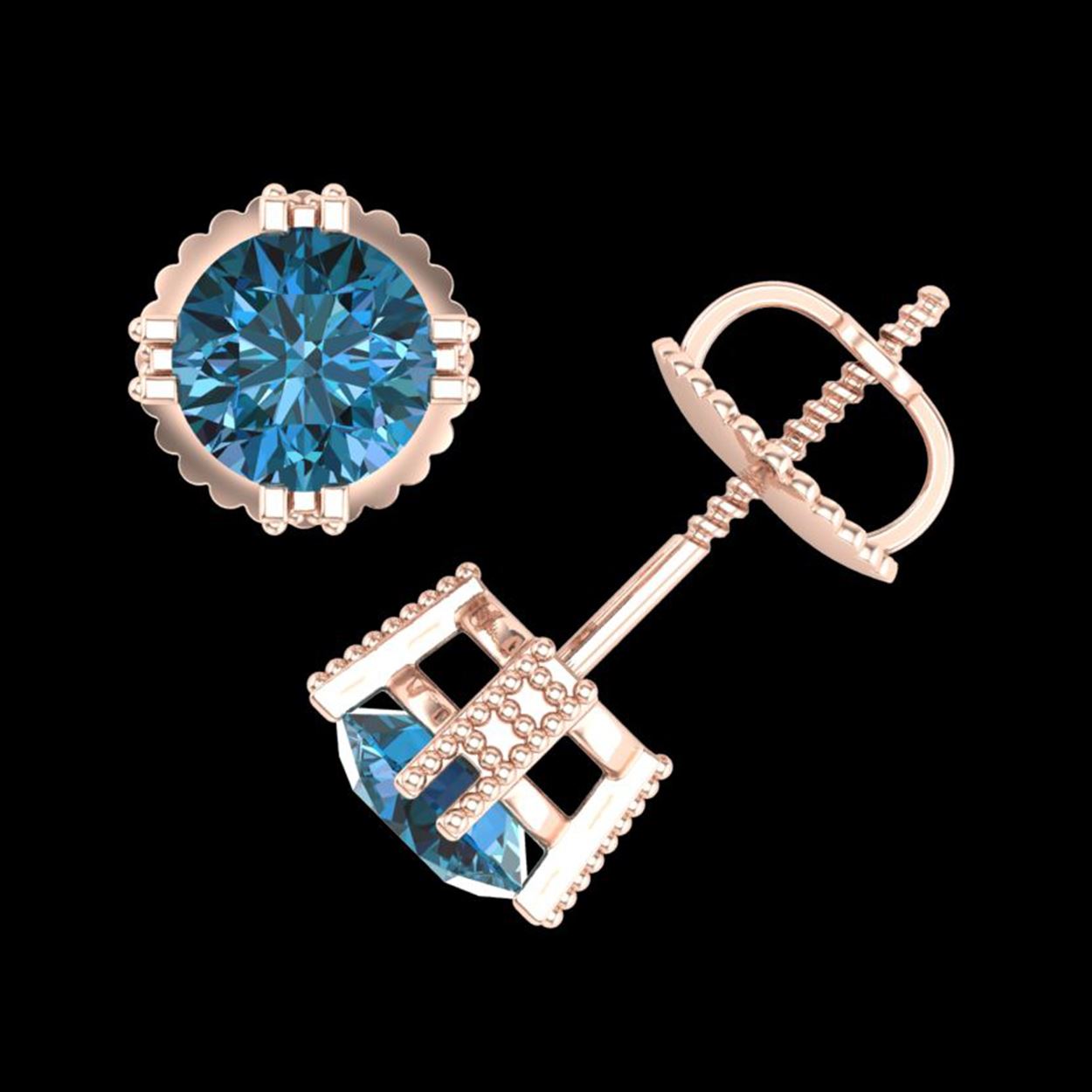 1.07 ctw Fancy Intense Blue Diamond Art Deco Earrings 18K Rose Gold