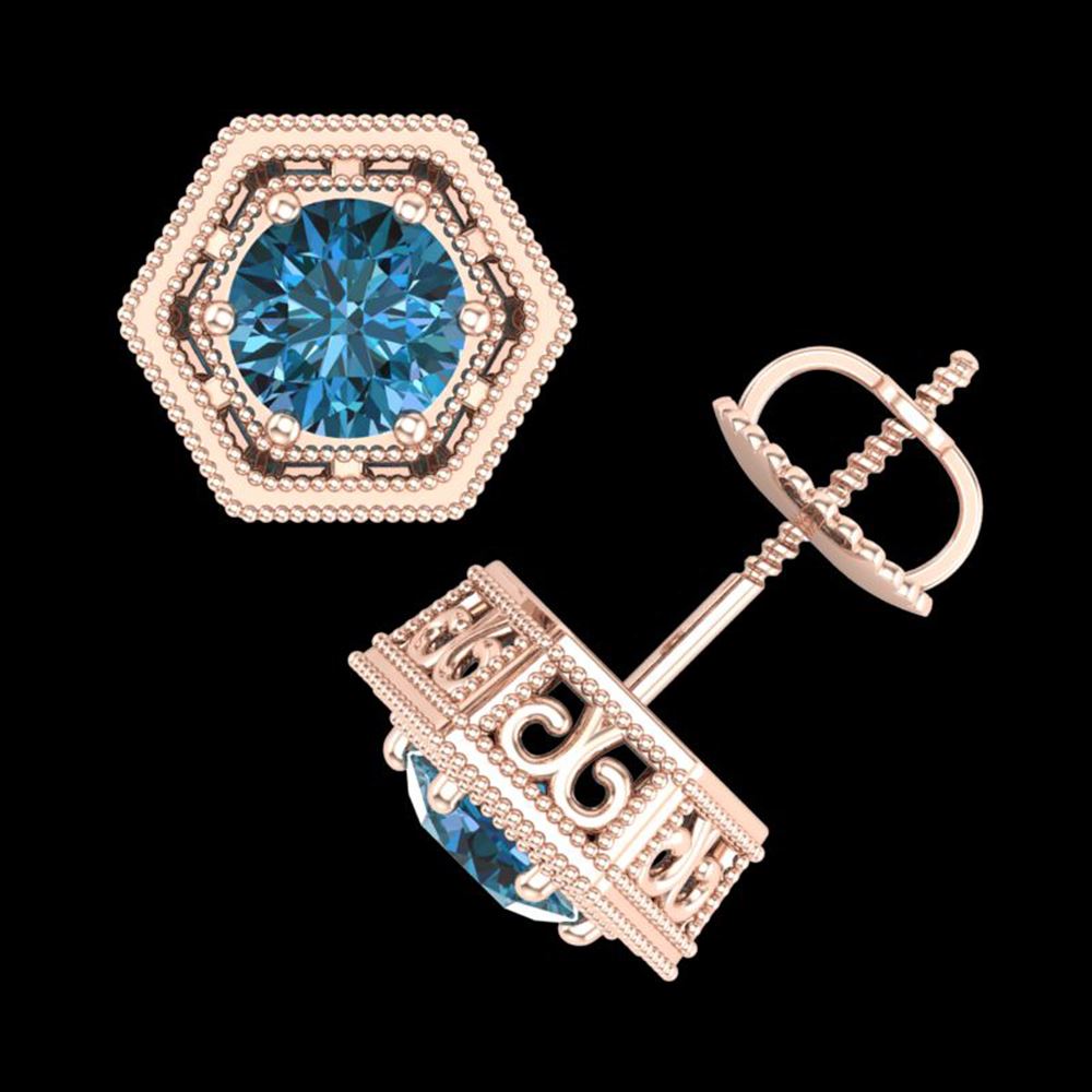 REF-131R8K - SKU: 37510 ---- 1.07 ctw Fancy Intense Blue Diamond Art Deco Earrings 18k Rose Gold