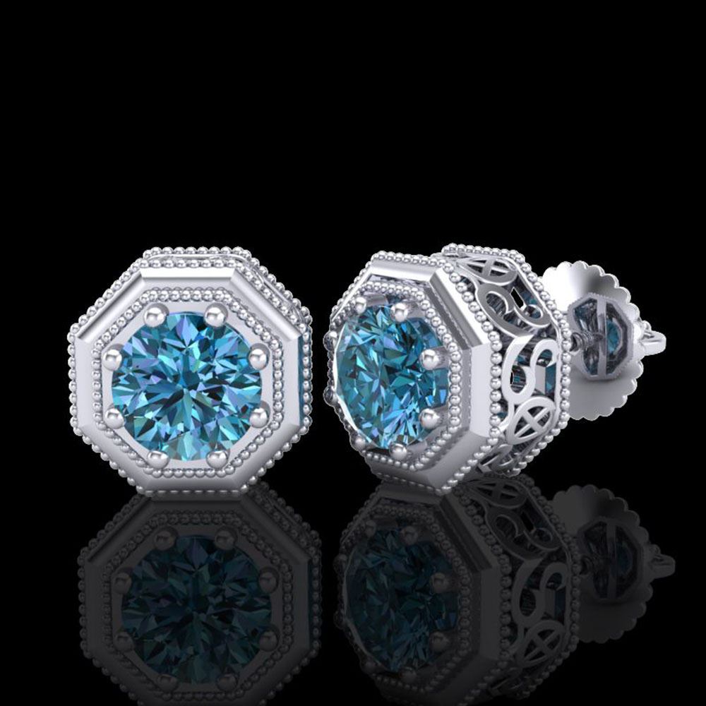 REF-118M2G - SKU: 37936 ---- 1.07 ctw Fancy Intense Blue Diamond Art Deco Earrings 18k White Gold