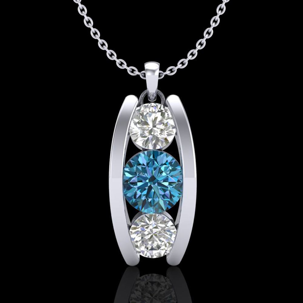 REF-123W6H - SKU: 37775 ---- 1.07 ctw Fancy Intense Blue Diamond Art Deco Necklace 18k White Gold