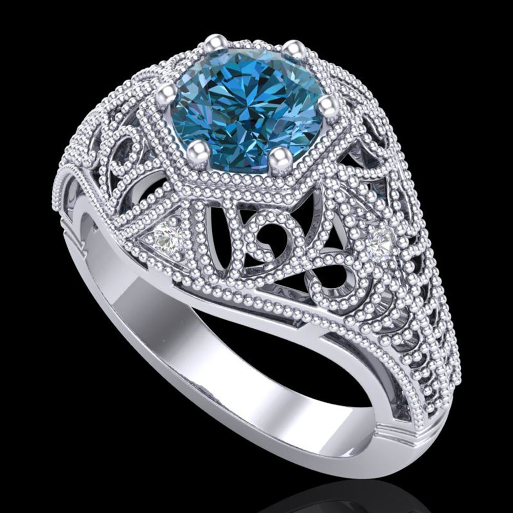 REF-218R2K - SKU: 37551 ---- 1.07 ctw Fancy Intense Blue Diamond Art Deco Ring 18k White Gold