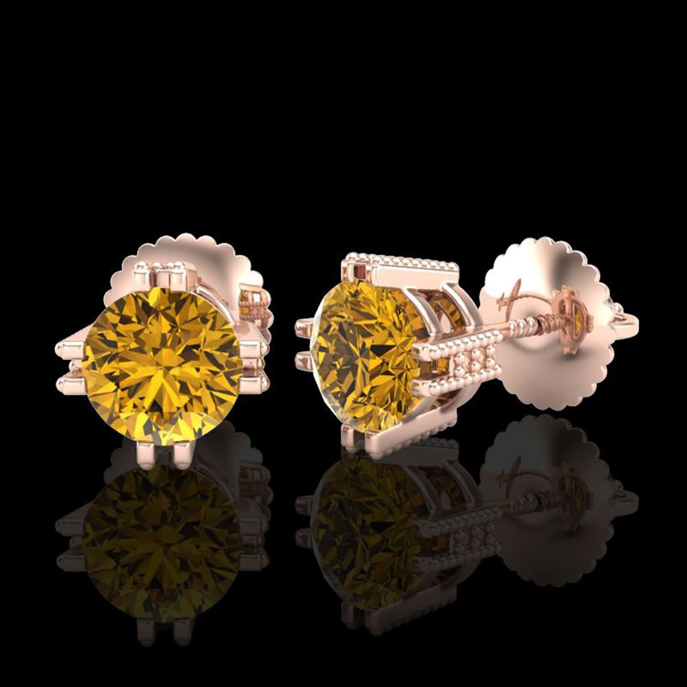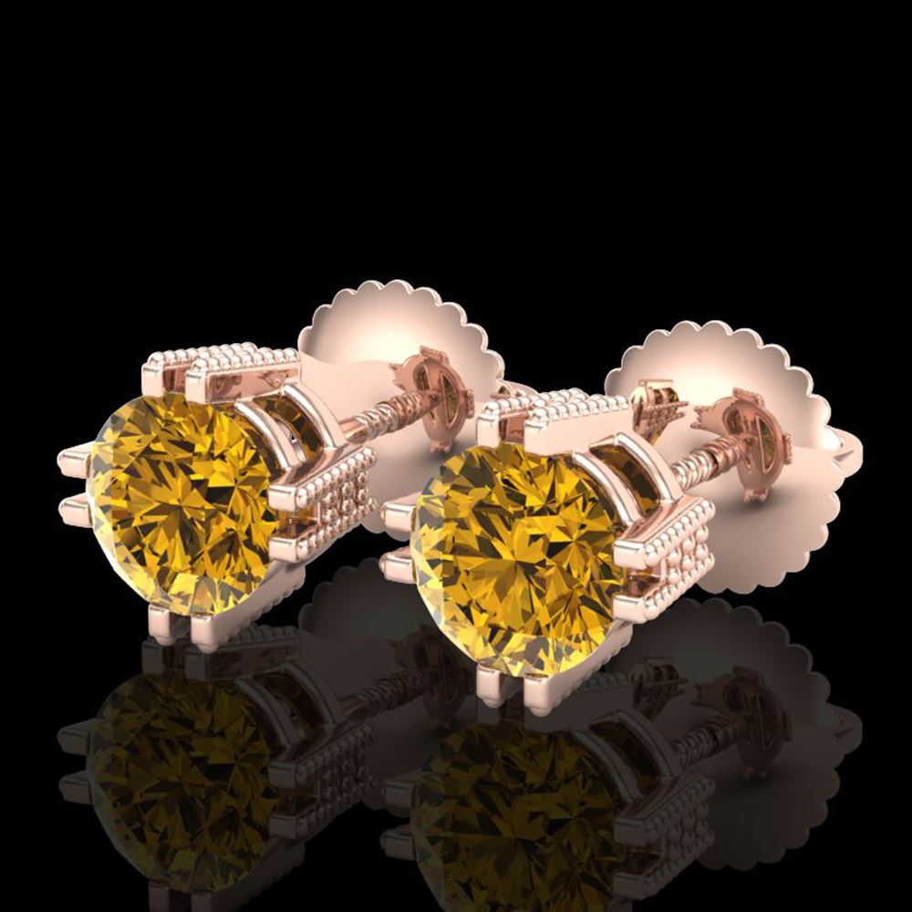 REF-172W8H - SKU: 37540 ---- 1.07 ctw Intense Fancy Yellow Diamond Art Deco Earrings 18k Rose Gold