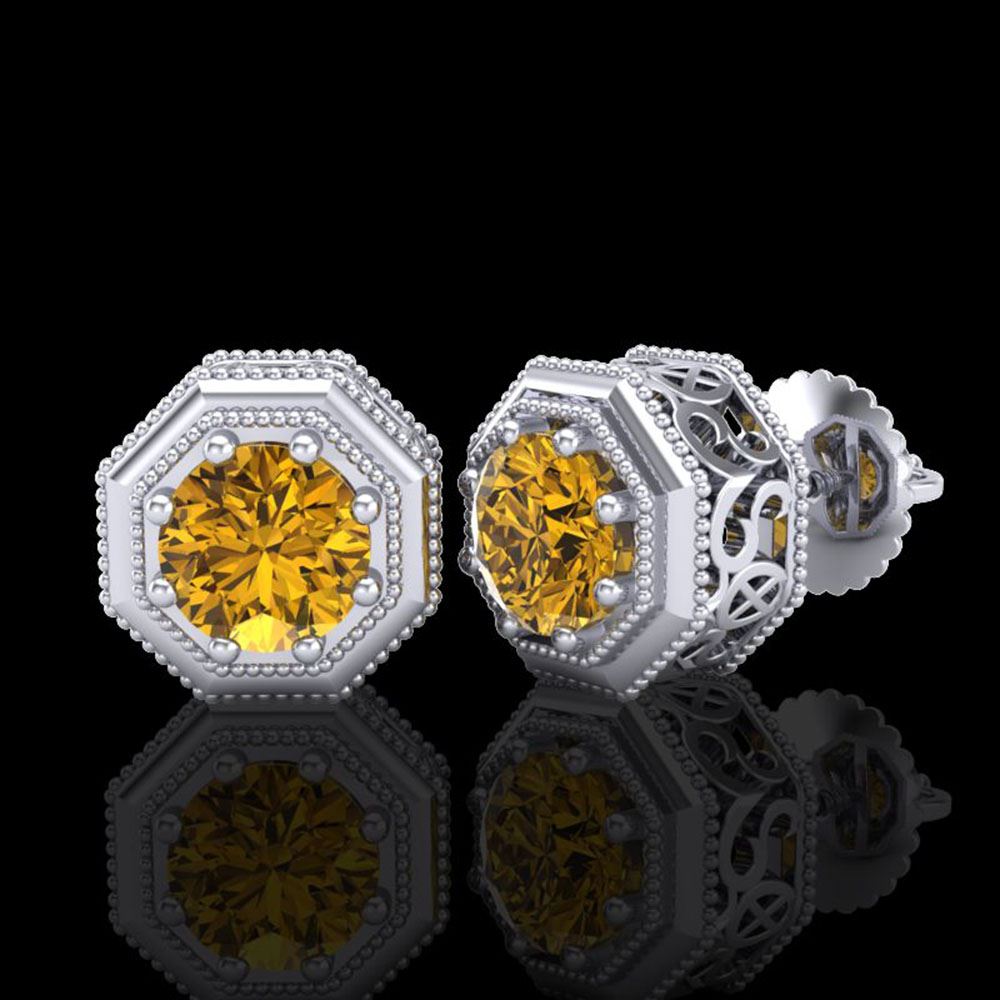 REF-172R8K - SKU: 37938 ---- 1.07 ctw Intense Fancy Yellow Diamond Art Deco Earrings 18k White Gold