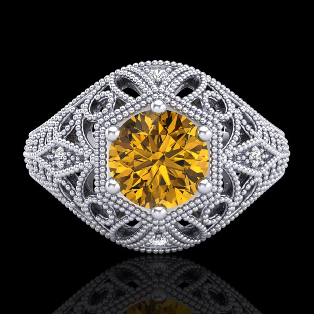 REF-254Y5X - SKU: 37553 ---- 1.07 ctw Intense Fancy Yellow Diamond Art Deco Ring 18k White Gold