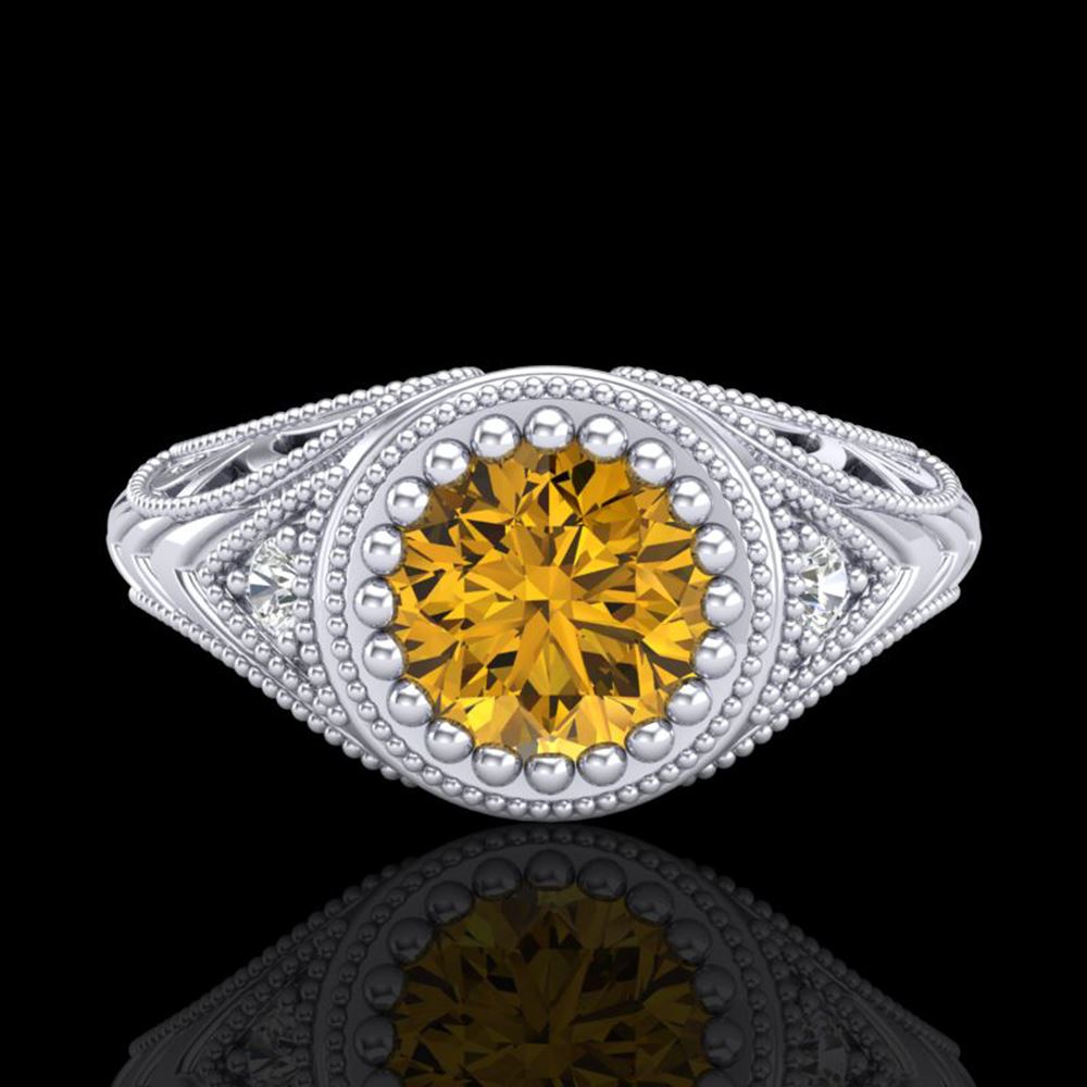 SKU: 37476 ---- 1.07 ctw Intense Fancy Yellow Diamond Art Deco Ring 18k White Gold