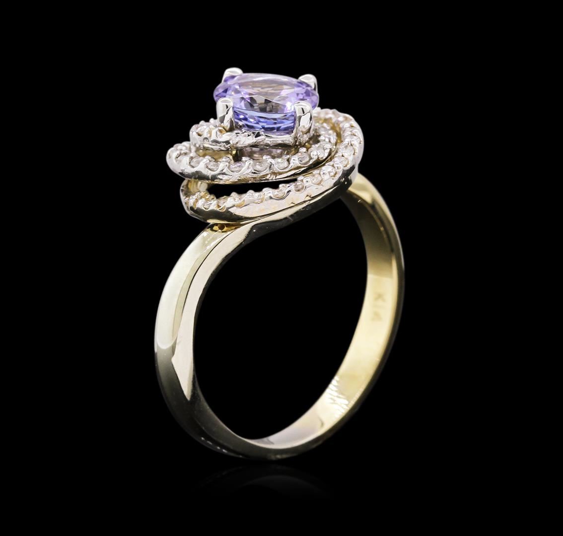 One ring featuring: 14KT white and yellow gold weighing 4.30 grams containing one tanzanite with a total weight of 1.07ct and diamonds with a total weight of 0.25ct.