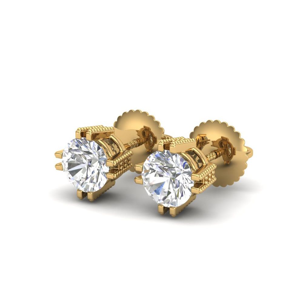 1.07 ctw VS/SI Diamond Solitaire Art Deco Stud Earrings 18K Yellow Gold
