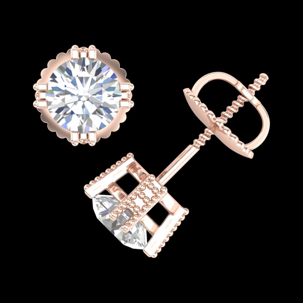 REF-200W2H - SKU: 36912 ---- 1.07 ctw VS/SI Diamond Solitaire Art Deco Stud Earrings 18k Rose Gold