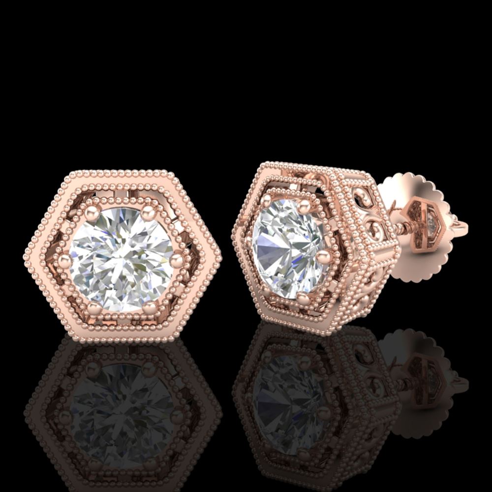 REF-218Y2X - SKU: 36900 ---- 1.07 ctw VS/SI Diamond Solitaire Art Deco Stud Earrings 18k Rose Gold