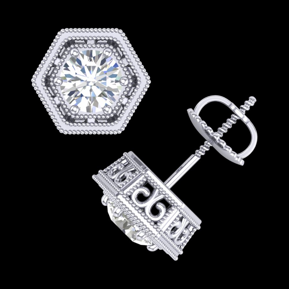 REF-218R2K - SKU: 36899 ---- 1.07 ctw VS/SI Diamond Solitaire Art Deco Stud Earrings 18k White Gold