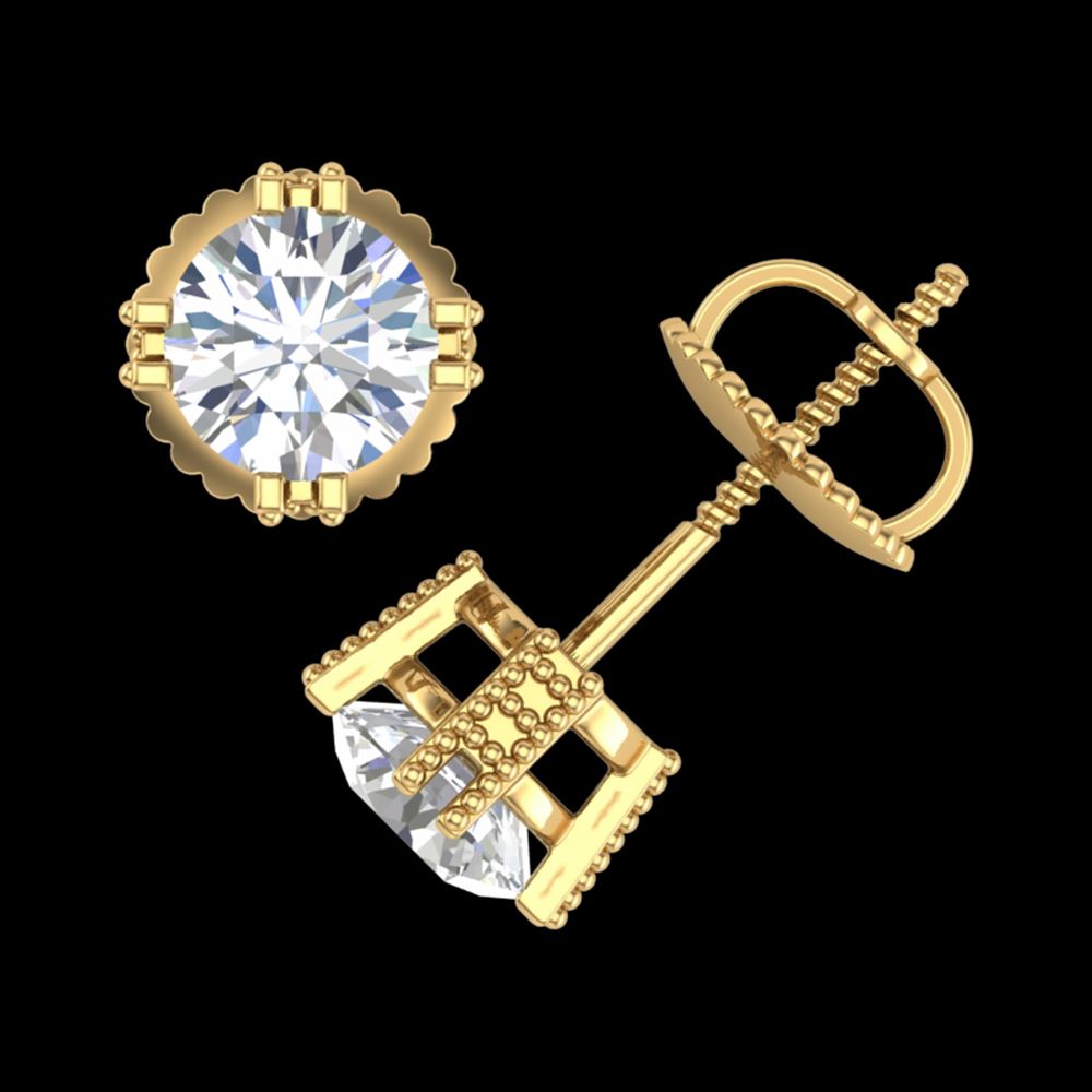 REF-200R2K - SKU: 36913 ---- 1.07 ctw VS/SI Diamond Solitaire Art Deco Stud Earrings 18k Yellow Gold