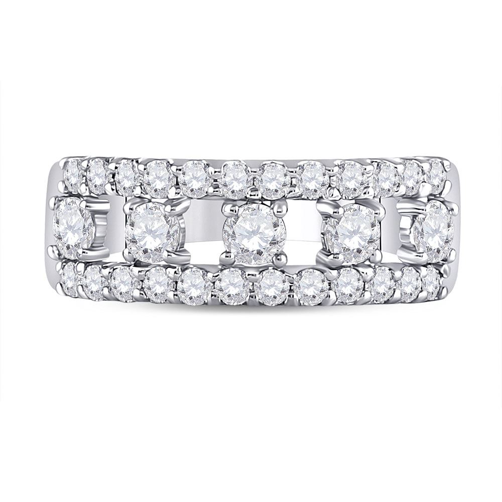 1.08 CTW Diamond Right Hand Three-Row Ring 14kt White Gold - SKU: GD149229