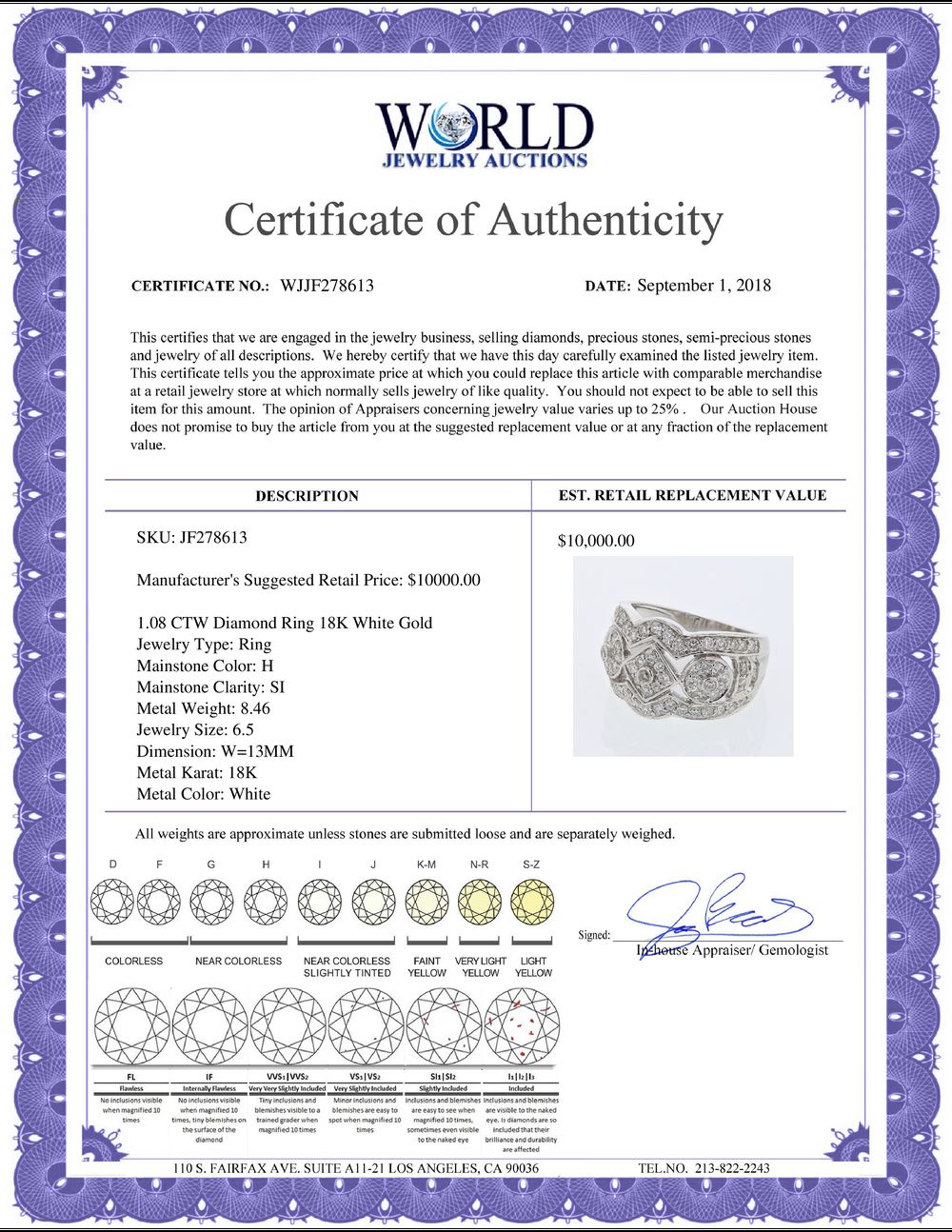WORLD JEWELRY AUCTION believes to the best of its knowledge that the information presented in any listing has come from reliable sources. Such information is presented solely for the convenience of the Purchaser. WJA makes no warranties of any kind related to the information presented in any listing. WJA further makes no warranties, either express or implied, relating to the value, marketability or condition of the lot described in any listing. Prospective bidders should investigate a lot thoroughly before bidding. By bidding the Bidder acknowledges that Bidder has investigated the lot to his or her satisfaction, or, that Bidder has chosen not to do so, and agrees to accept the lot being bid on with no objections after the sale closes. If you are uncertain please contact us with your questions prior to bidding. If you are still uncertain after we reply, please refrain from bidding. Photos other graphic material contained in any listing of generic or duplicate lots may be stock presentations and not necessarily of the specific lot.