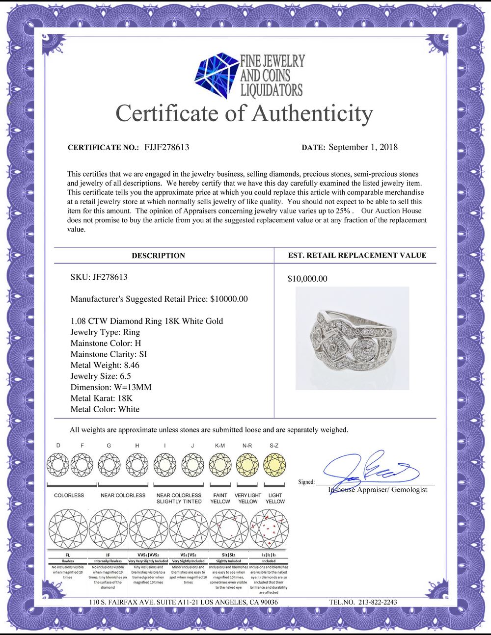 REF-130F7N - JF278613 ---- 1.08 CTW White Round Diamond Ring 18K White Gold