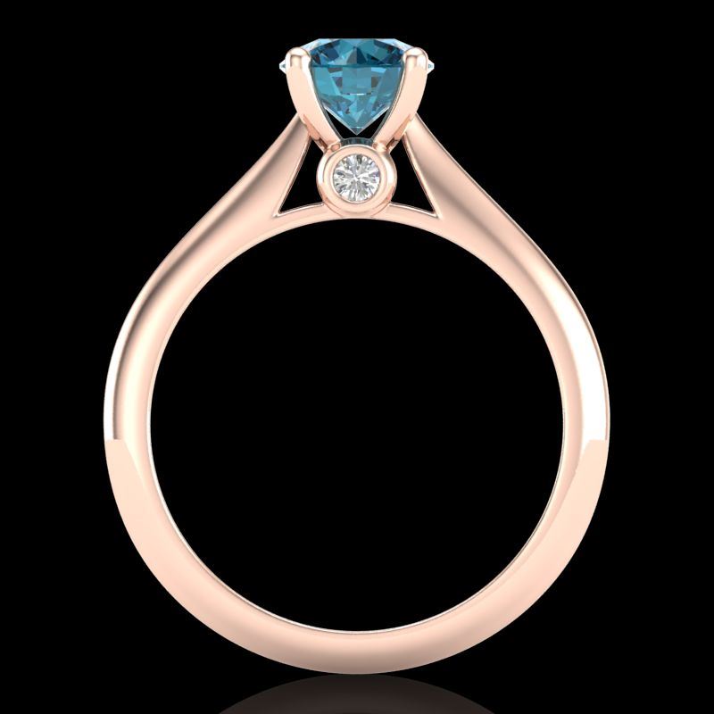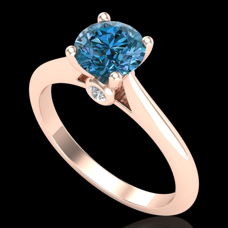 REF-161K8W -38203 ---- 1.08 CTW Fancy Intense Blue Diamond Solitaire Art Deco Ring 18K Rose Gold ---- Luxury Designer Brand Ring Appraised at $9,800 Certificate Number US38203 18k Rose gold, Ring Size is 7, Ring measuring approx. Uniform, weighing in total approx. 3.6 grams. Made in the USA and is stamped 18k, Main stone 1 carat total weight containing 1 pieces of Intense Fancy Blue color with SI quality Round shape cut Diamond , Stone #2 0.08 carat total weight containing 2 pieces of H-I color with VS/SI quality Round shape cut Diamond